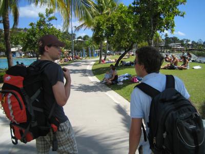 Ja wir mussten schon ein Stueck durch Arlie Beach wandern bis wir es zum Hafen geschafft hatten.