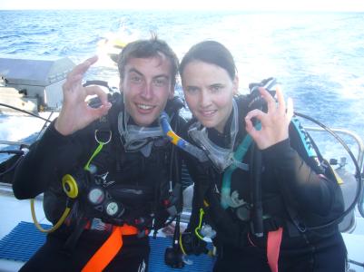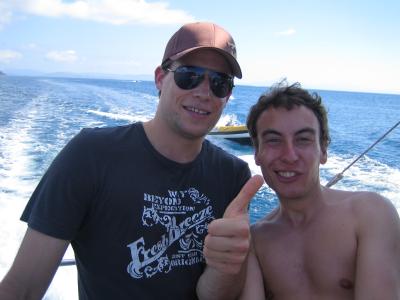 An Bord wurden wir dann erstmal von Duncan und Ono den beiden Dive Instructors in die Kunst des tauchen eingefuehrt.